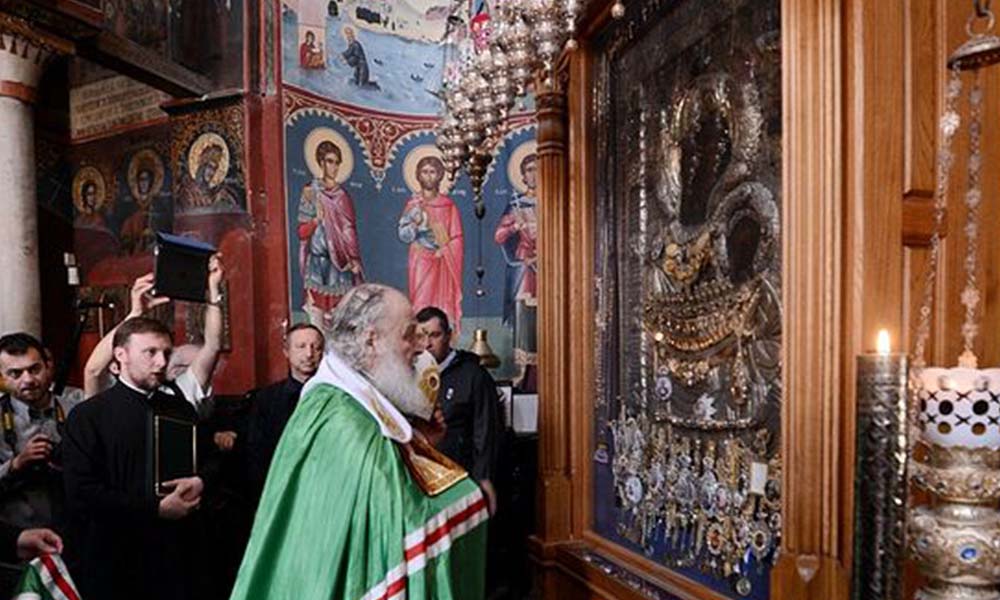 მსურს მადლობა გითხრათ ამ შესანიშნავი საშუალებისთვის, მომეცა რა შესაძლებლობა, ჩემს ცხოვრებაში კვლავ ვწვეოდი ივერიის მონასტერს. ყოველთვის, როცა ფეხს ვადგამ ათონზე, მაშინვე მოვდივარ “კარიბჭის” ღვთისმშობლის სასწაულმოქმედი ხატის მოსალოცად. უწინ მომლოცველებთან ერთად თან ვახლდი ჩემს კურთხეულ წინამორბედებს: უწმინდეს პატრიარქ პიმენსა და უწმინდეს პატრიარქ ალექსი II-ს, და ახლაც მომეცა შესაძლებლობა, ვყოფილიყავი აქ, ამ ღირსშესანიშნავ ჟამს. უნდა ითქვას, რომ, სავარაუდოდ, თითოეული რუსი პილიგრიმი განსაკუთრებული განიცდით მოეშურება ამ წმინდა მონასტრის თავშესაფარში.