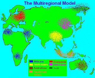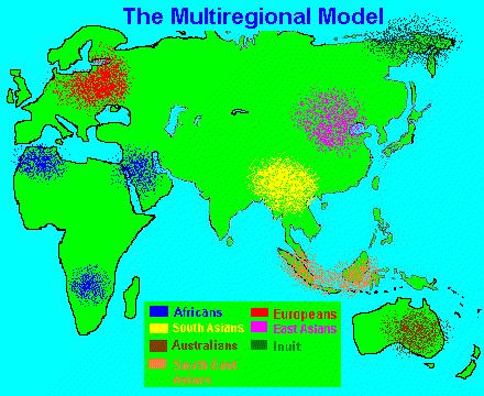 ნახ. 4: ადამიანისწარმოშობის „მულტირეგიონალური“ მოდელი.
