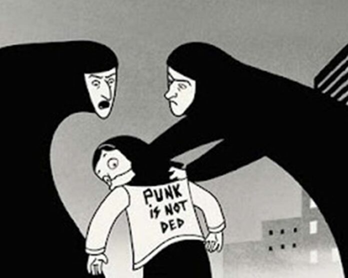 ფოტოზე გამოსახულია კადრი მულტიპლიკაციური ფილმიდან “პერსეპოლისი”