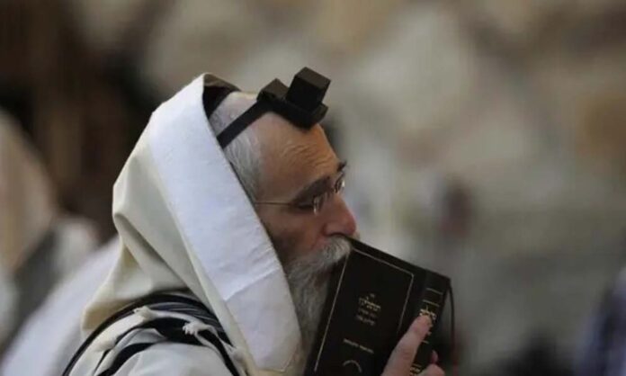 ფოტოზე ჩანს იუდეველი კაცი, რომელიც ტეფილინებით ლოცულობს. ტეფილინი არის იუდეველთა ლოცვის ატრიბუტი. ესაა ტყავის ქამარი და მათზე დამაგრებული შავი, პატარა კოლოფი, რომელშიც დევს პერგამენტზე დაწერილი რამდენიმე უმნიშვნელოვანესი ციტატა თორიდან (მოსეს ხუთწიგნეულიდან). კოლოფებში თავისთავად შეუძლებელია იდოს მოსეს რჯულის 613-ვე მცნება, მაგრამ, იქაა უმთავრესი, იუდეველთა მრწამსი: