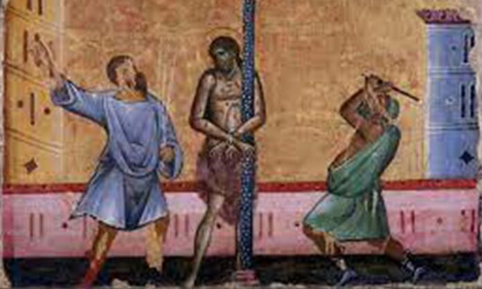 ფოტოზე: ქრისტეს გაშოლტვა, გვიდო სიენელი (მე 13 ს.ნე)